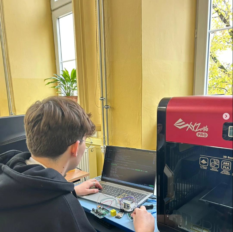 Drużyna Code Bee wzięła udział w szkoleniu z druku 3D, które zorganizowane zostało w Podkarpackim Centrum Innowacji w Rzeszowie. Zdecydowaliśmy się poprosić specjalistów z PCI o pomoc, ponieważ nasze wydruki na szkolnej drukarce 3D miały pewne niedoskonałości. Na szkoleniu otrzymaliśmy wskazówki zarówno dotyczące tego, jak przygotować model do wydruku, ale także jakich filamentów używać do konkretnych drukarek i na co zwracać uwagę podczas korzystania z samej drukarki 3D 👩‍💻👨‍💻🛰️🐝